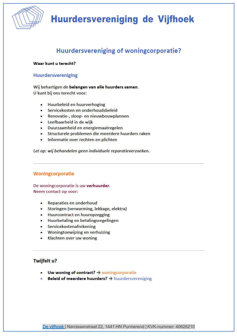 Welkom bij huurdersvereniging de Vijfhoek